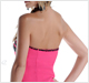 Chiffon short hot pink dress with black chunky beadwork in shape of swirly lines on bodice. Straight skirt with 5 layers of flowy chiffon with beads on hemline.